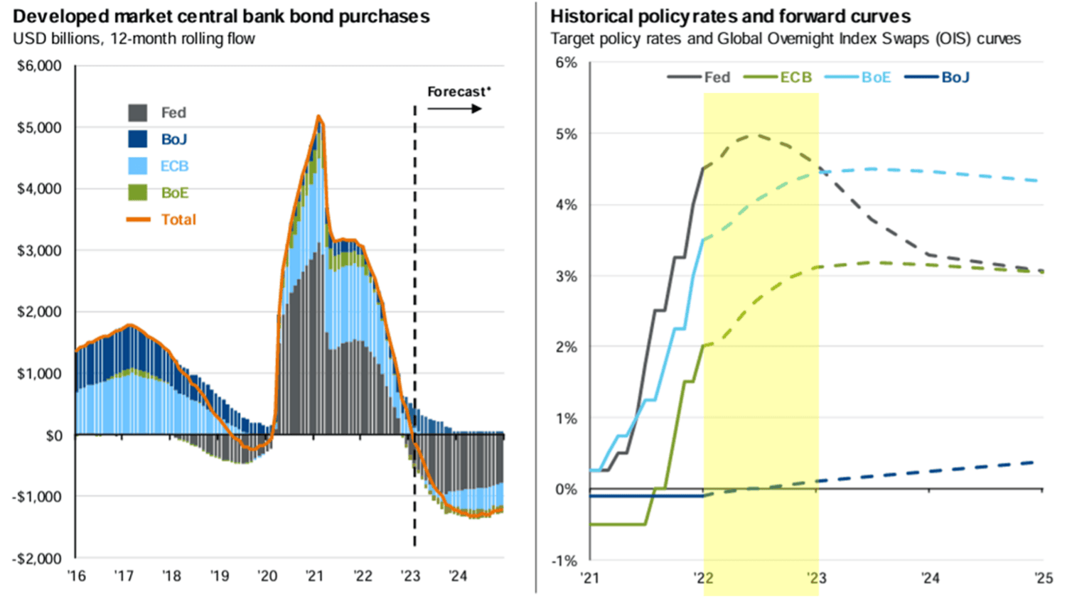 Centrálne banky zvyšujú úrokové sadzby kvôli tomu, aby zrazili infláciu späť k dvojpercentnému cieľu. Sadzby sa do ekonomiky a do rozhodnutí jednotlivých ekonomických subjektov (firmy, spotrebitelia, štát ) dostávajú len postupne. No dnes už vidíme, že najprudšie zvýšenie sadzieb v poslednom roku si začína vyberať svoju daň na výkonnosti ekonomiky. Prirodzene to pomáha poklesu inflácie.