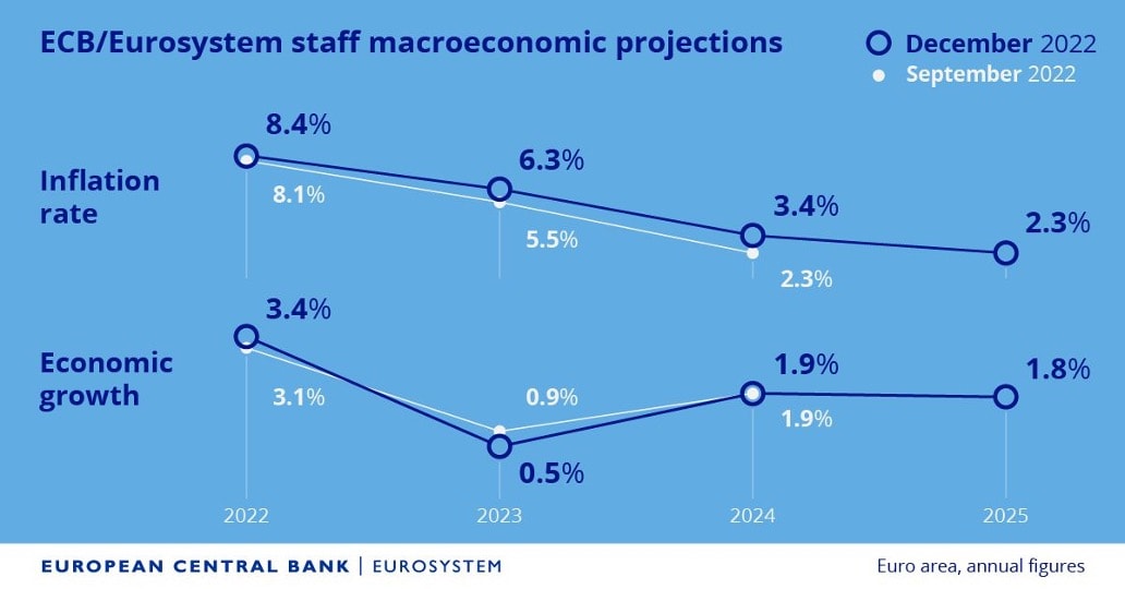 Graf 4: Ekonomické projekcie ECB, zdroj: ECB