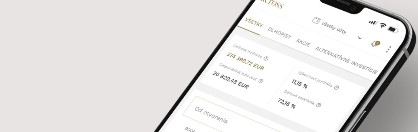 Mobilná aplikácia je základom modernej správy úspor. Uľahčuje investovanie, prináša na pár klikov non-stop prehľad o účte, umožňuje podpisovať pokyny a robiť zmeny z ktoréhokoľvek miesta na zemi. Cez mobilnú aplikáciu Across Connect si viete skontrolovať zloženie vášho portfólia, vykonané pohyby a transakcie, detaily jednotlivých investícií, zobraziť výpisy z účtu, nastaviť spôsob ich zasielania alebo aktualizovať kontaktné údaje.
